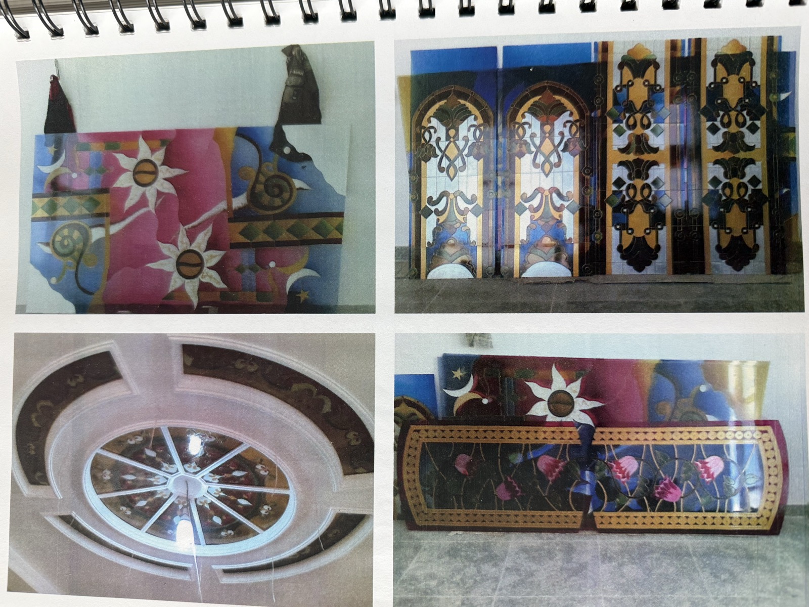 I spent a year in Fez studying traditional zellij tilework, and returned to the studio obsessed with the idea that the mathematics of tile patterns could be painted in reverse on a single pane of glass. These works are the result — individual stars, eight-point rosettes, and a ceiling rose commissioned for a private library. The geometry is exact to within half a millimeter; the paint layers give it breath.